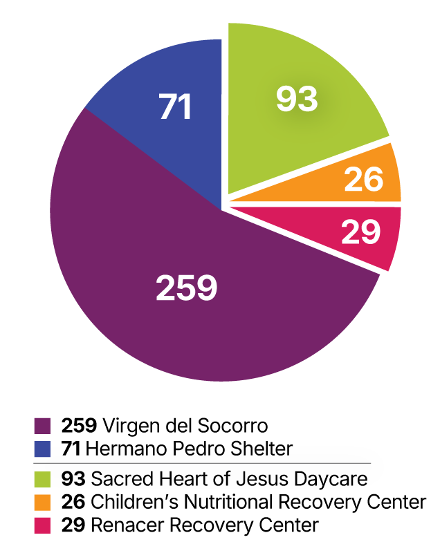 Las Obras cares for those with disabilities, abandoned youth and adults, men recovering from addiction, infants affected by malnutrition, and working families in need of child care. Every person receives comprehensive care, education, and spiritual support.